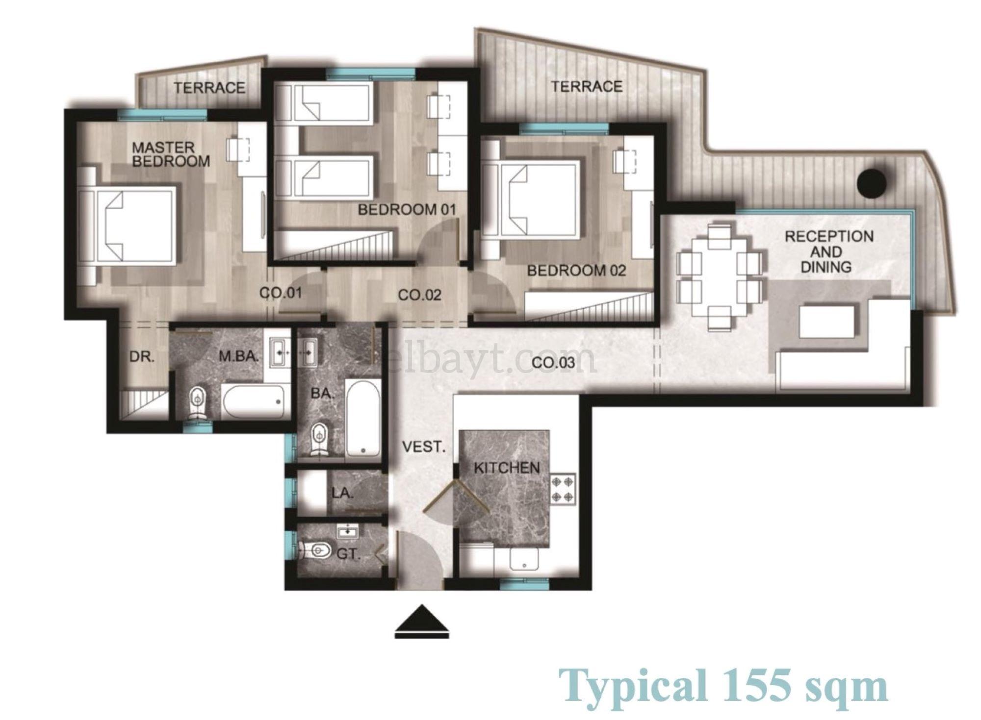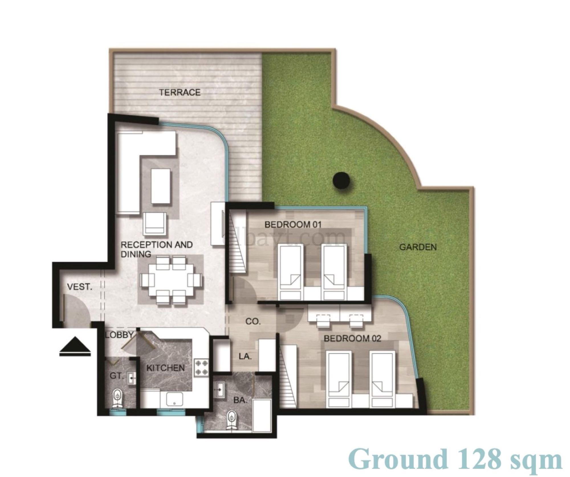 | Size | Type | Beds | Finishing | Area | District | Project |
